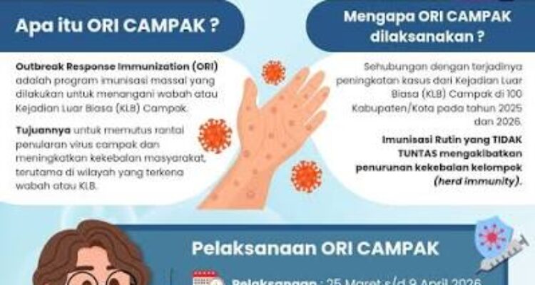 Tangani Campak, Jabar Laksanakan Respon Imunisasi Kesehatan|April 2, 2026by Seputar News Seputarnews.com /KOTA BANDUNG- Dinas Kesehatan Jawa Barat mendorong petugas kesehatan di daerah