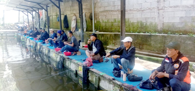 Kurang lebih 35 orang Peserta yang ikut memeriahkan acara Silaturahmi halal bihalal  dengan lomba mancing berhadiah,  lebih awal tempat lapak diundi terlebih dahulu  dengan mengoclok nomor bola yang sudah ada dalam galon dan diketuarkan kembali bolanya untuk menentukan tempat lapak  peserta  mancing berdasarkan nomor bola yang sudah diundi.