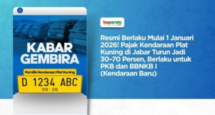 Mulai 1 Januari 2026, Pajak Kendaraan Plat Kuning di Jabar Turun Ekonomi, Pajak|February 28, 2026February 28, 2026by Seputar News Seputarnews.com /KOTA BANDUNG – Pemerintah Daerah Provinsi Jawa Barat memberikan insentif pajak