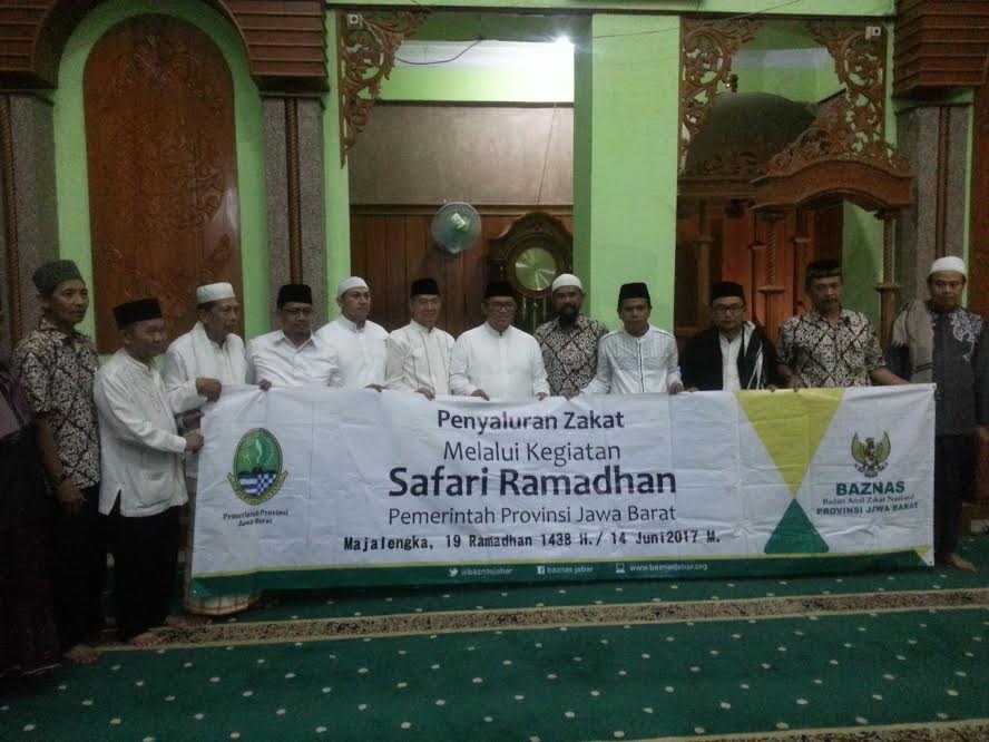 Dalam kesempatan tersebut Aher pun mendampingi Ketua Baznas Jawa Barat menyalurkan zakat ke pengurus DKM mesjid Agung Majalengka.