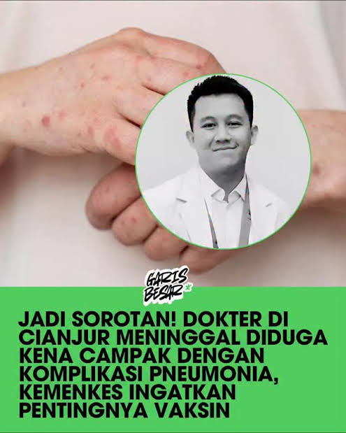 Seorang dokter internship di salah satu RS diย Cianjur,ย Jawa Barat, berinisial AMW (26) meninggal dunia dengan status suspekย campak pada Kamis (26/3/2026).