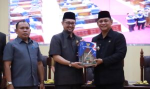 RAPERDA : Plt. Bupati Bekasi, Asep Surya Atmaja, menegaskan komitmennya terhadap Rancangan Peraturan Daerah (Raperda) tentang Perlindungan Guru dan Tenaga Kependidikan. Kegiatan tersebut berlangsung dalam Rapat Paripurna Penyampaian Nota Penjelasan LKPJ Bupati Bekasi Tahun 2025, Senin (30/03/2026). FOTO: Endar Raziq B / Diskominfosantik.