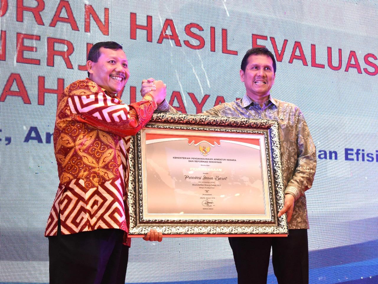 Dalam LHE AKIP 2017 Pemerintah Provinsi Jawa Barat kembali meraih predikat A dengan nilai 80,96 dan Sumatera Selatan (80,91). “Alhamdulillah tadi saya mewakili Pak Gubernur, kita kembali mendapat A seperti tahun lalu, tapi nilainya secara keseluruhan naik signifikan menjadi 80,96,” katanya.