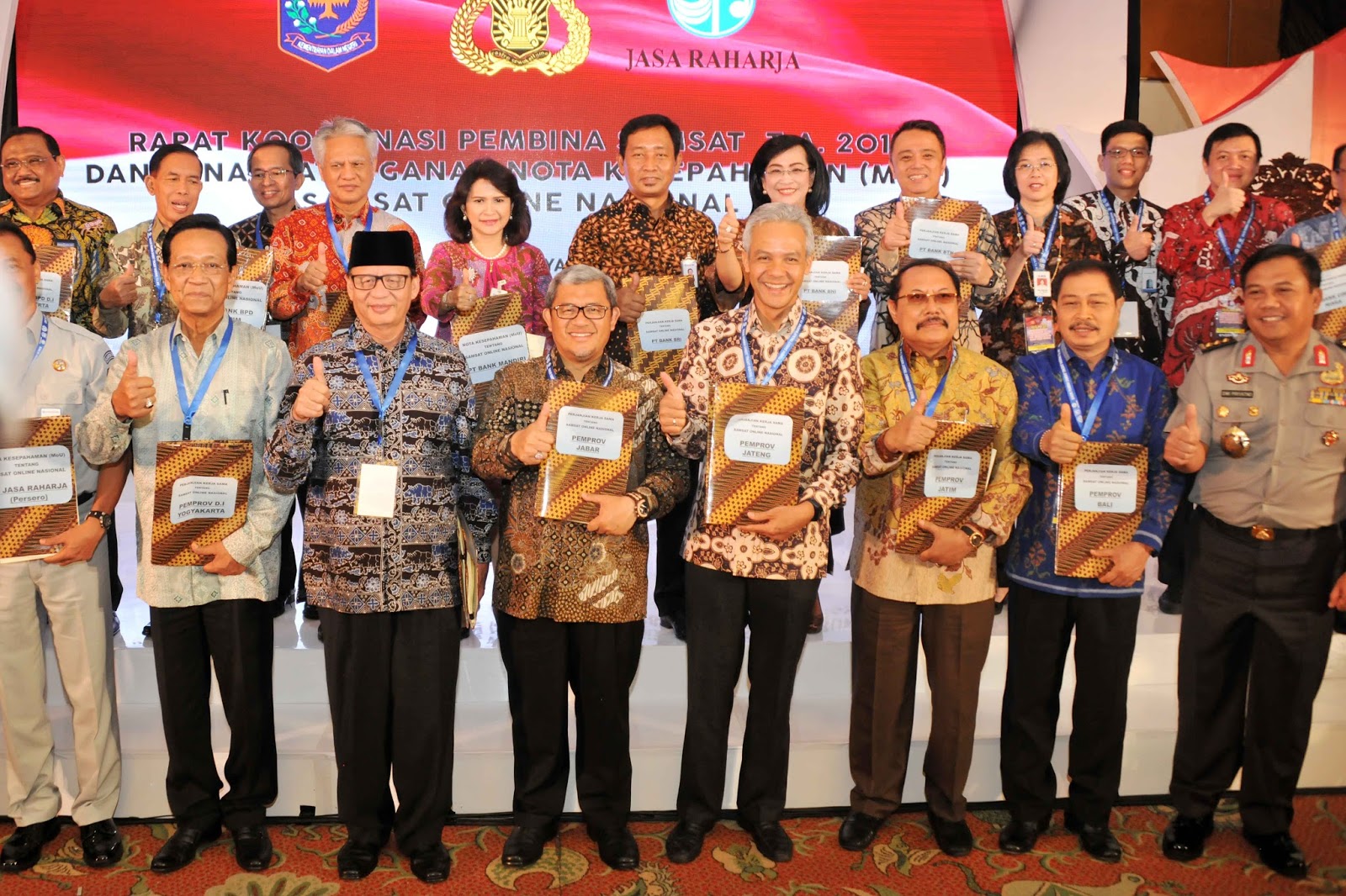 JAKARTA – Tujuh Provinsi sepakat untuk menerapkan Sistem Administrasi Manunggal Satu Atap (Samsat) secara online. Kesepakatan tersebut dituangkan melalui MoU antara Gubernur Jawa Barat, Gubernur Jawa Tengah, Gubernur DI Yogyakarta, Gubernur Jawa Timur, Gubernur Bali, Gubernur Banten, Gubernur DKI Jakarta, tujuh Bank Pembangunan Daerah dan tujuh Bank lainnya dengan Mabes Polri di Hotel Sahid Jakarta Pusat, Kamis (07/09/2017).