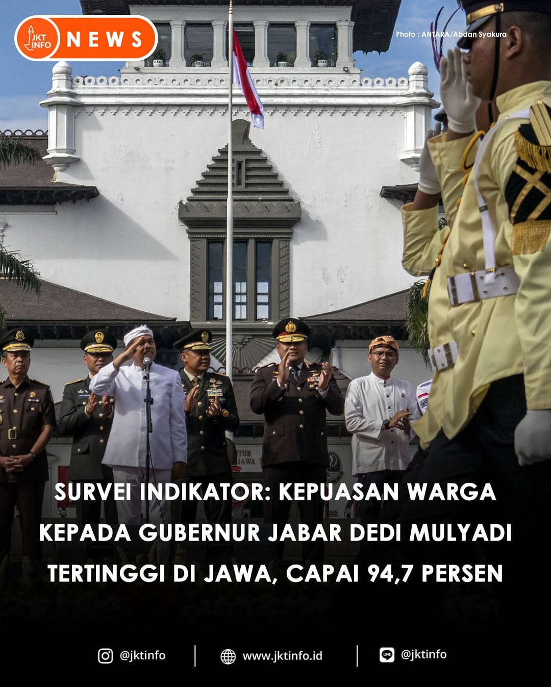 Pendiri dan Peneliti Indikator Prof. Burhanudin Muhtadi menyebutkan kepuasan atas kinerja KDM, sapaan akrab Dedi Mulyadi, sebagai Gubernur Jawa Barat mencapai 95.5 persen atau sangat tinggi. Jika dibanding dengan temuan pada Mei tahun lalu, tingkat kepuasan masyarakat relatif stabil bahkan cenderung meningkat.